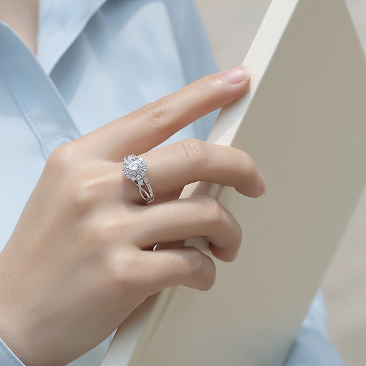 1.0 Carat Moissanite Diamond Sterling Silver Ring with adjustable ring band