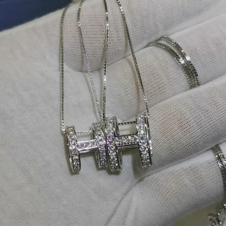 0.5 Ct Moissanite Pendant Necklace Sterling Silver D Color Round Cut Diamond Necklace Letter H Necklace